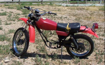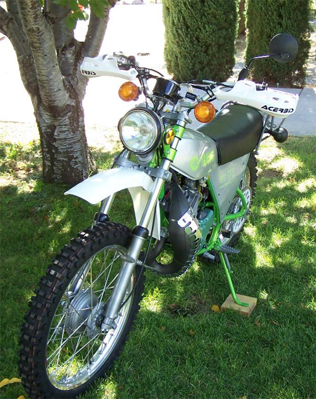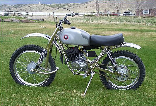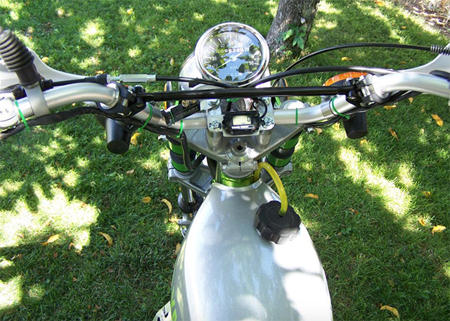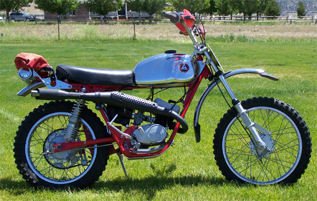 It looks like a mild mannered Dirt Squirt, right? The Model 97/98 rear shocks, Rocky forks and modified pipe "hint" as to this not being your little sister's play bike. This has a ported and reed valved 125 Wombat engine for motivation. This a vintage dirt-bike version of the "Sleeper" muscle-car.