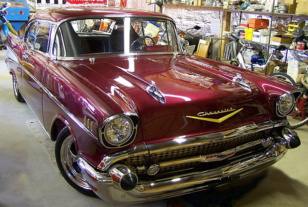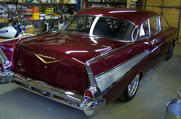 This 57 rides low on an Art Morrison chassis with a 4-link rear end
